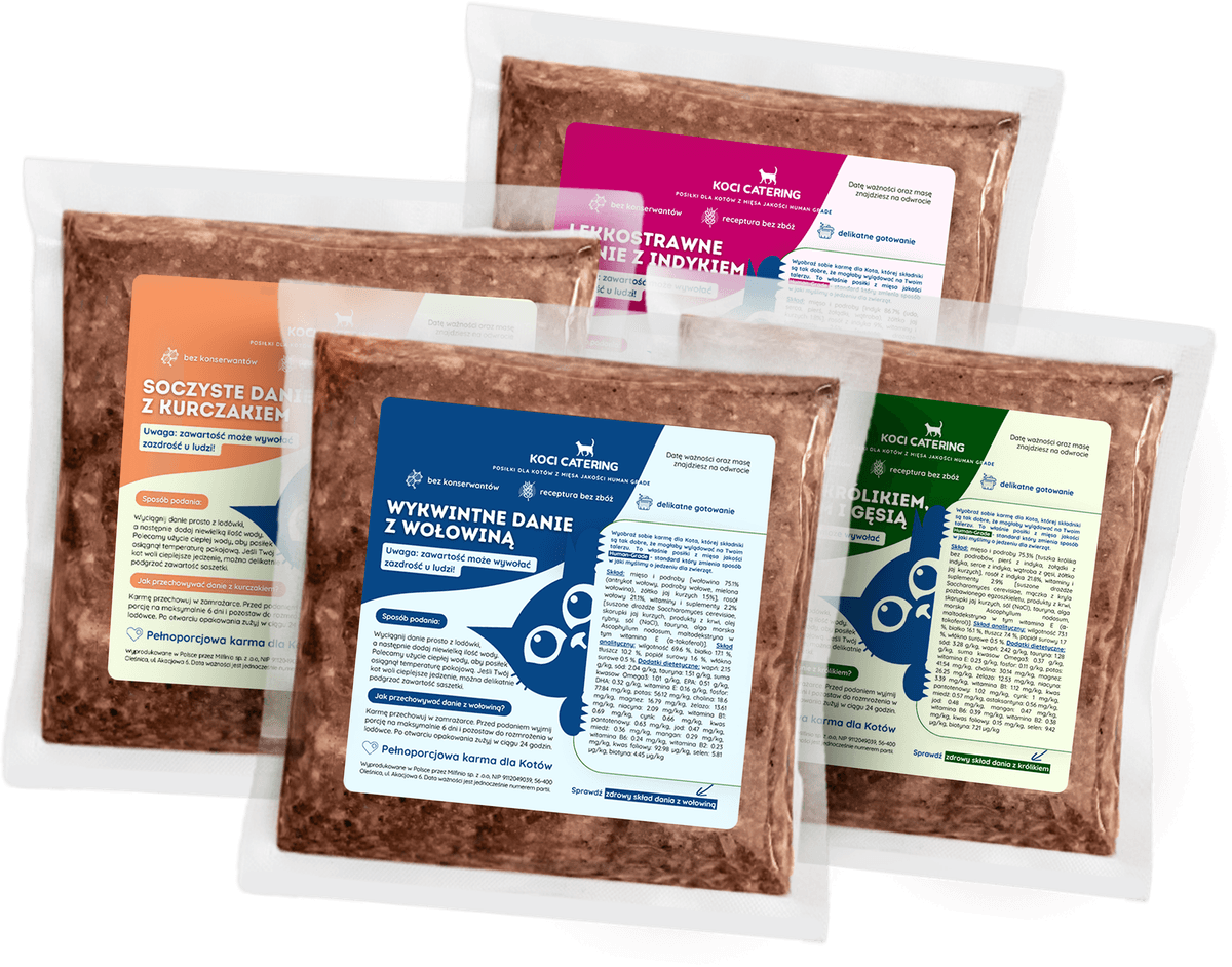 Zamówiłam Koci Catering na próbę w grudniu, bo mój syberyjczyk zaczął bojkotować suchą karmę. Przestawił się błyskawicznie i jesteśmy bardzo zadowoleni (a ja szczególnie z metody dostawy pod drzwi w wybrany dzień).